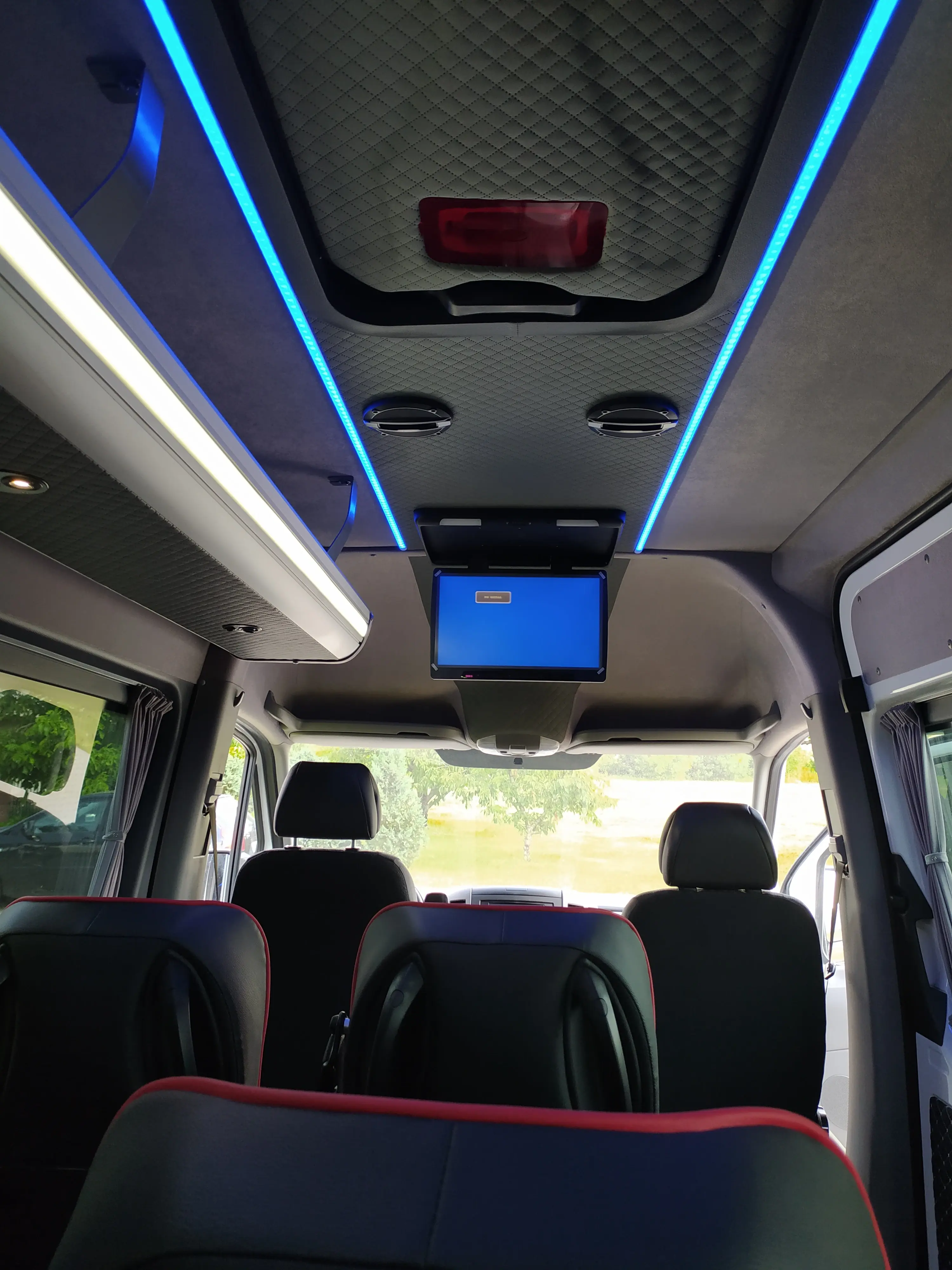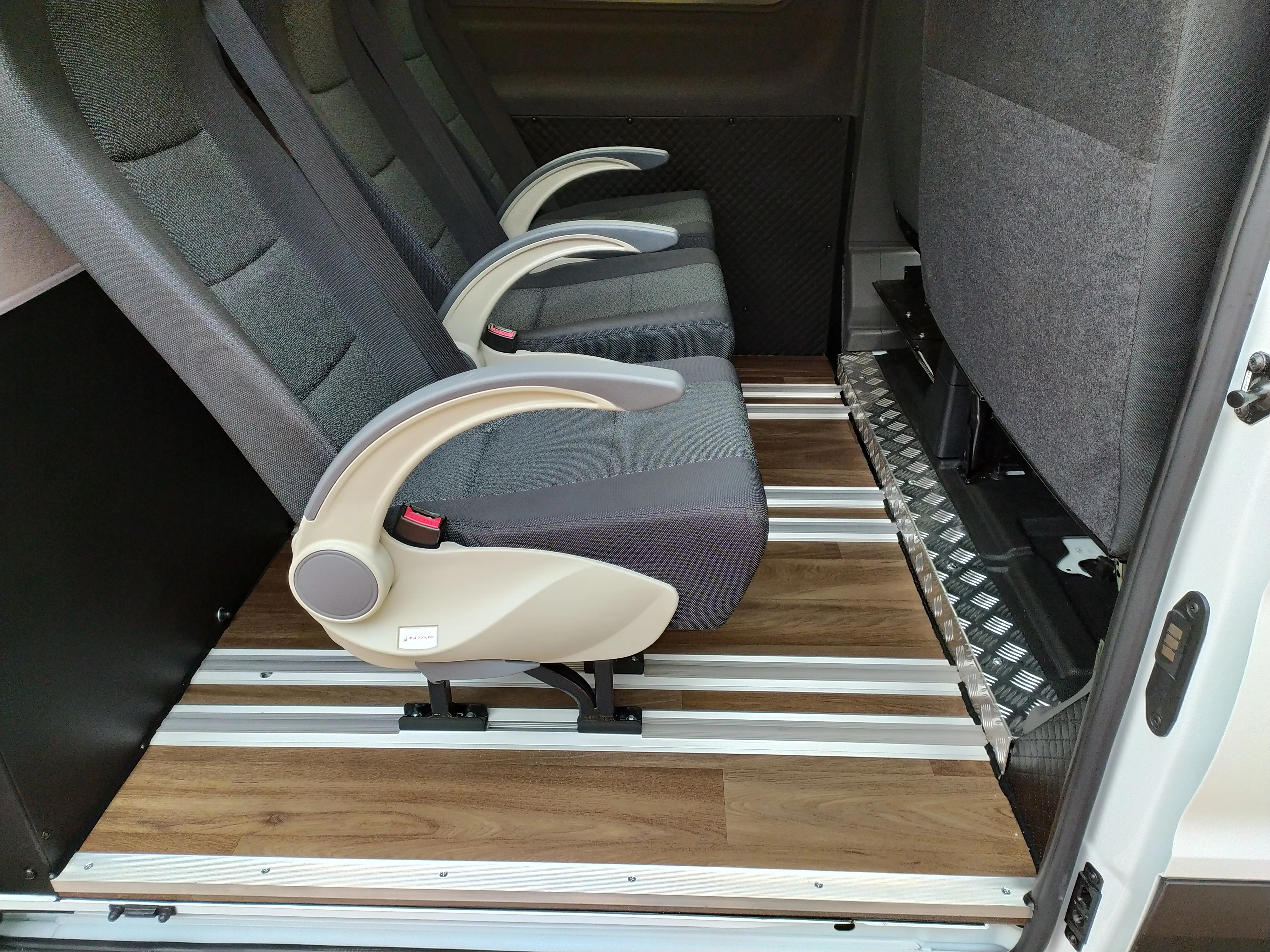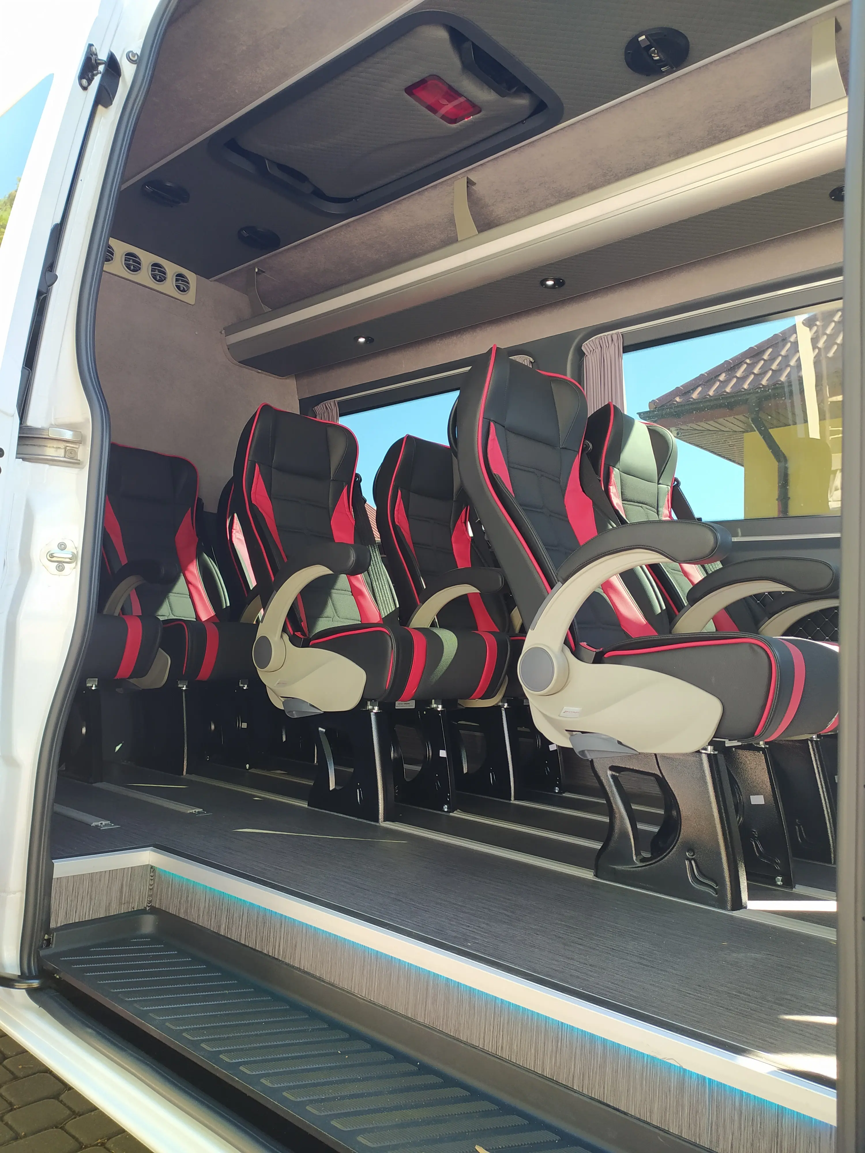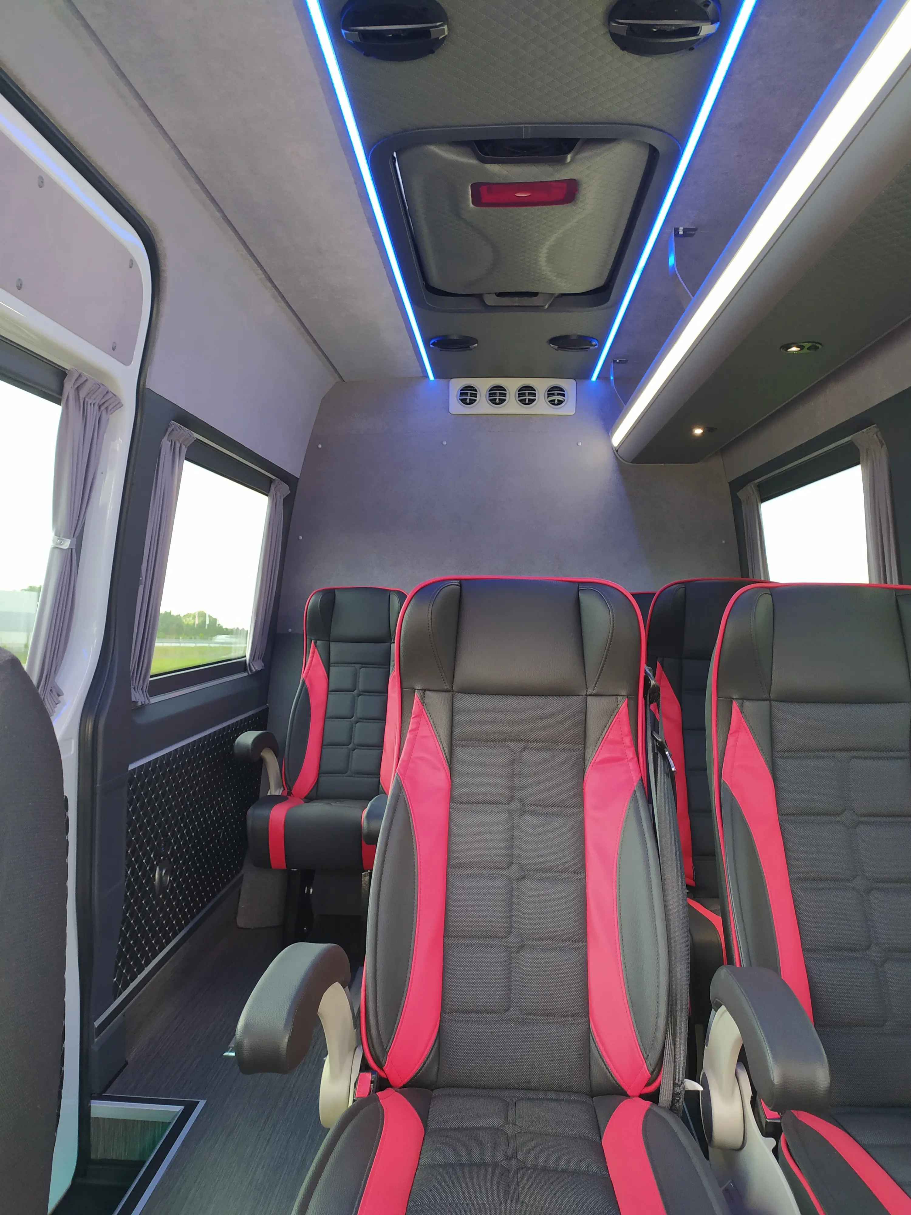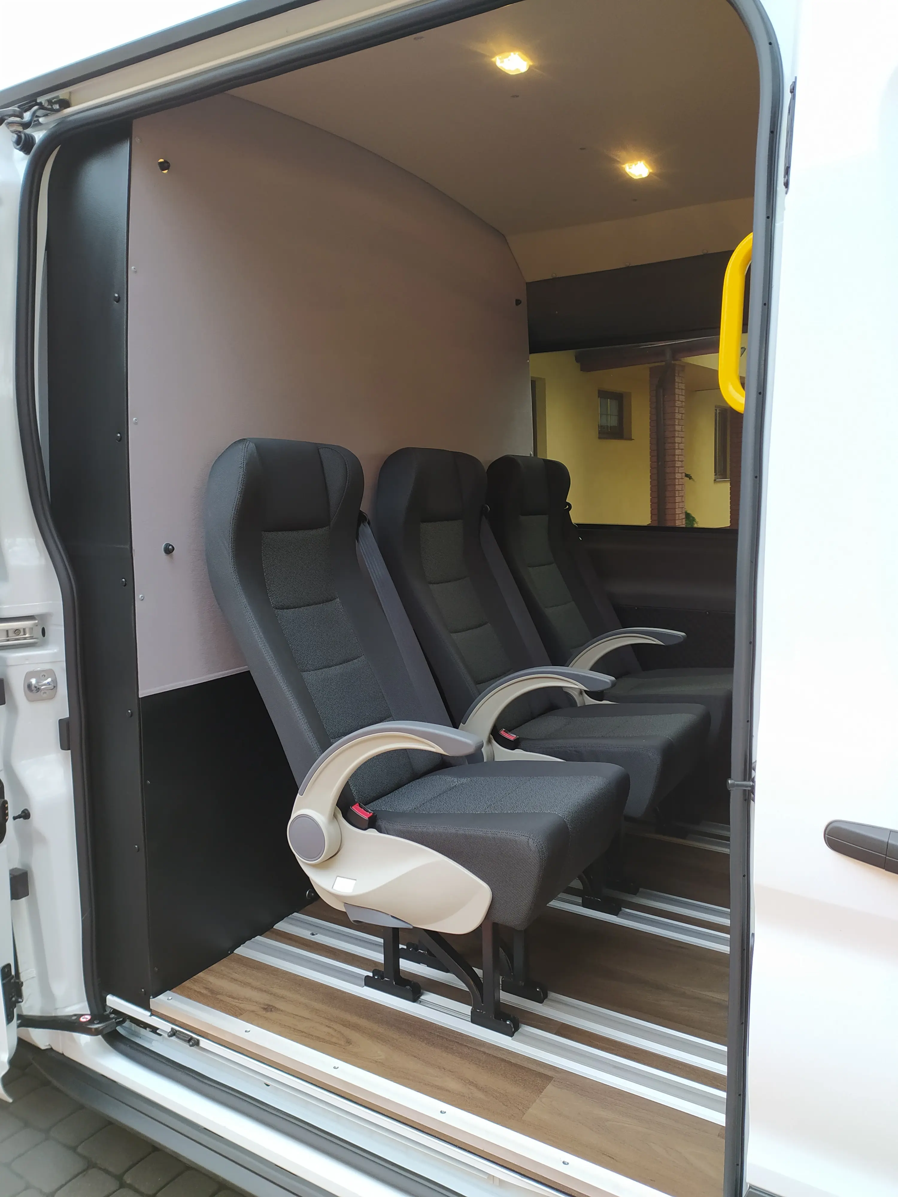 Zdjęcie w tle: rząd busów dostawczych na placu